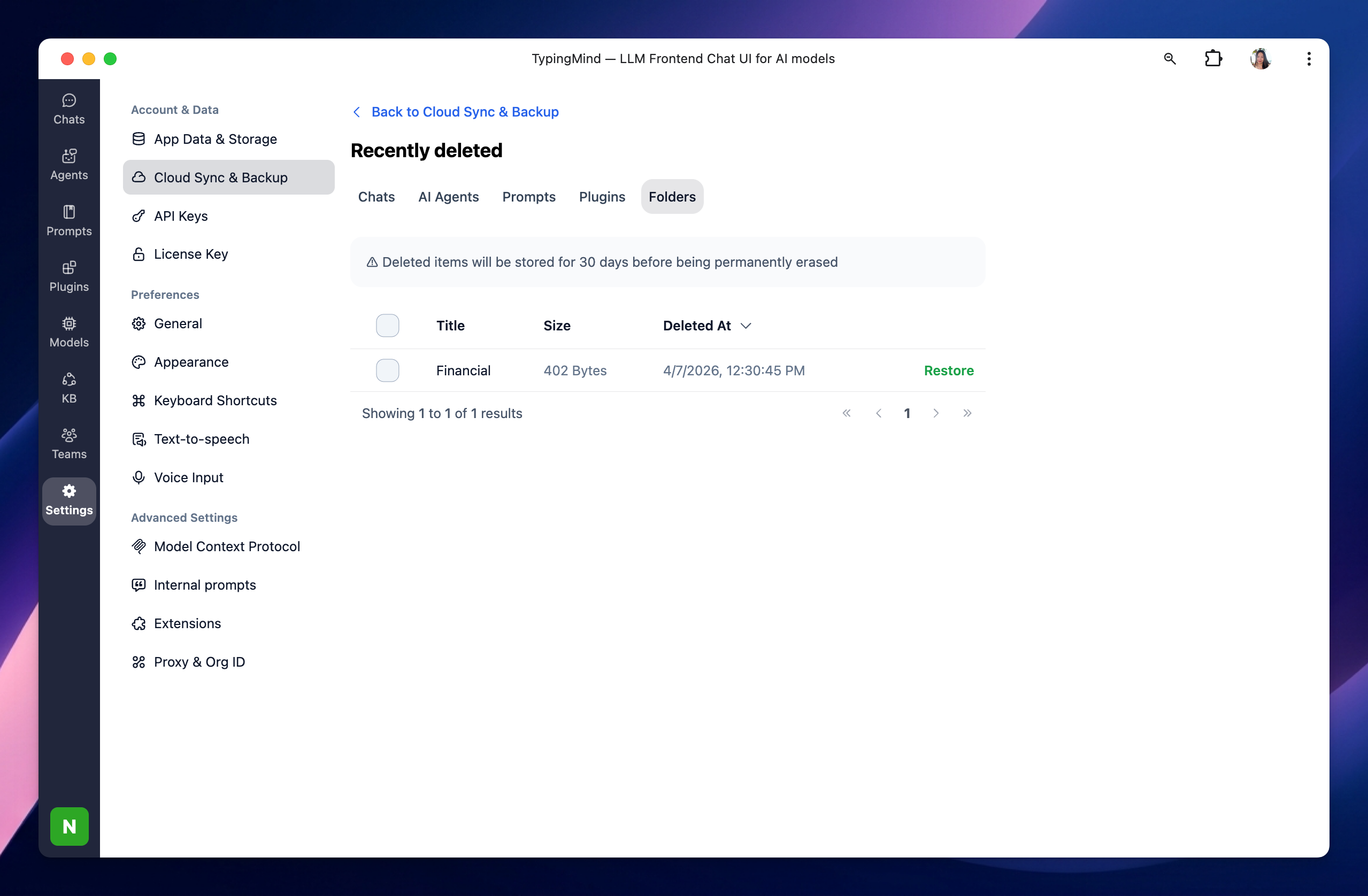 Restore Deleted Items: You can now restore more recently deleted items, including agents, plugins, prompts, and folders.